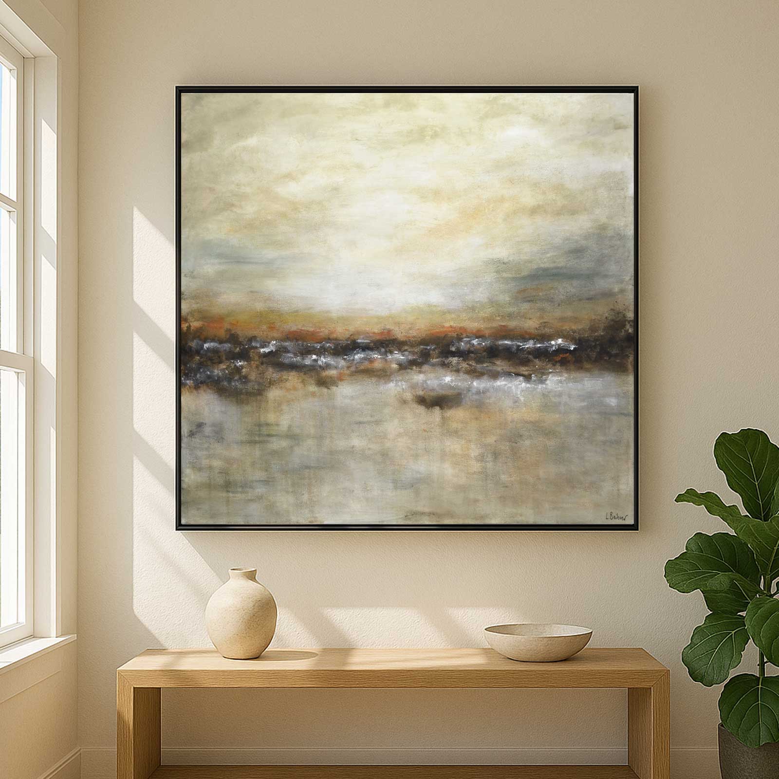 This painting is so beautiful! The colors are subtle, and the overall piece is calming to look at. Larry was a pleasure to work with. He created the painting to the specifications I wanted, and sent it in a timely manner. The packaging for shipment was amazing--so protected. I'm super happy with my purchase!